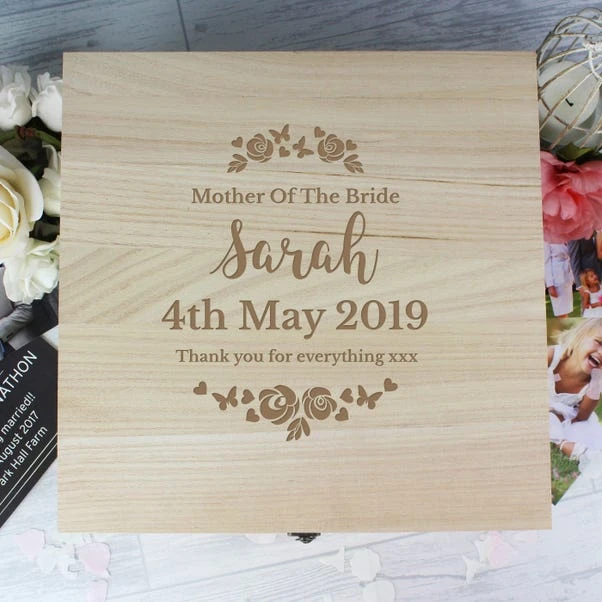 The Personalised Any Role Floral Watercolour Wedding Large Wooden Keepsake Box: Gift them this beautiful wooden keepsake box, personalised with their role and wedding details. With its floral design and ample storage space, it’s perfect for storing cherished mementoes.