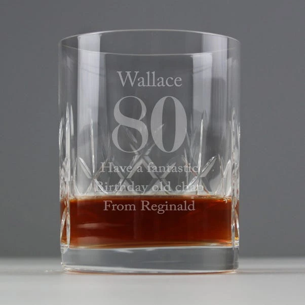 Mark a special birthday with The Birthday Cut Crystal Whisky Tumbler, personalised with a message and age. Presented in a silver folding box, it’s an elegant choice for celebrating.