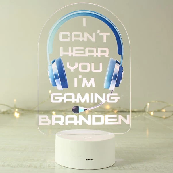 Personalise this lamp for any gamer lover, and the perfect addition to any gaming set up, comprising of a sturdy base with a LED light which you can personalise with a name of your choice. To change the colour of the LED light, simply touch the base to pick a colour of your choice. These can be set to change constantly if all the colours are your favourite, or you can pick one specific colour! Personalise with a name of up to 12 characters long!