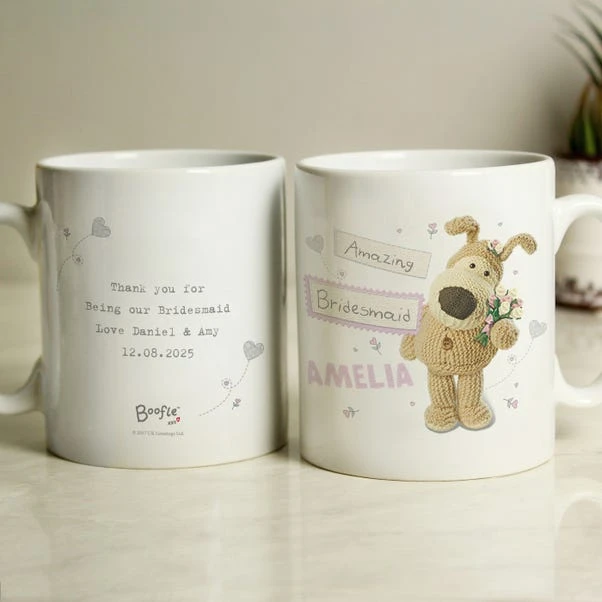 Express gratitude to the bridal party with our Personalised Boofle Female Wedding Mug. Crafted from ceramic, it can be personalised with their name and a special message. With its adorable design, it’s a gift they’ll cherish.
