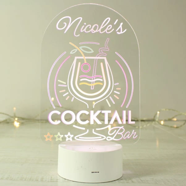 This personalised lamp is a great gift for a cocktail lover and the perfect addition to any bar set up, comprising of a sturdy base with a LED light which you can personalise with a name of your choice. To change the colour of the LED light, simply touch the base to pick a colour of your choice. These can be set to change constantly if all the colours are your favourite, or you can pick one specific colour! Personalise with a name of up to 12 characters long!