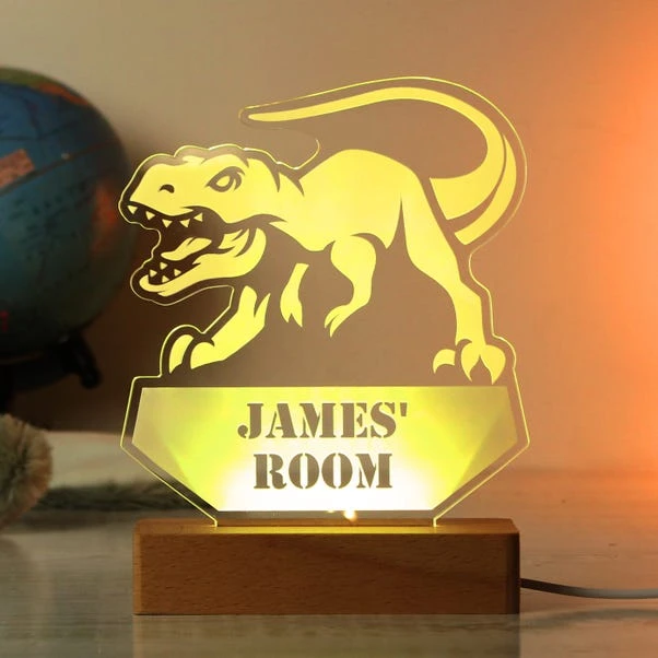 This roarsome dinosaur night light is the perfect addition to any T-Rex fans room and is perfect as a night light. Comprising of a sturdy base with a LED light which you can personalise with a name of your choice with an additional line below of up to 8 characters long To change the colour of the LED light, simply use the control pad to choose a colour, or you can pick one specific colour! Personalise with a name of up to 12 characters long!