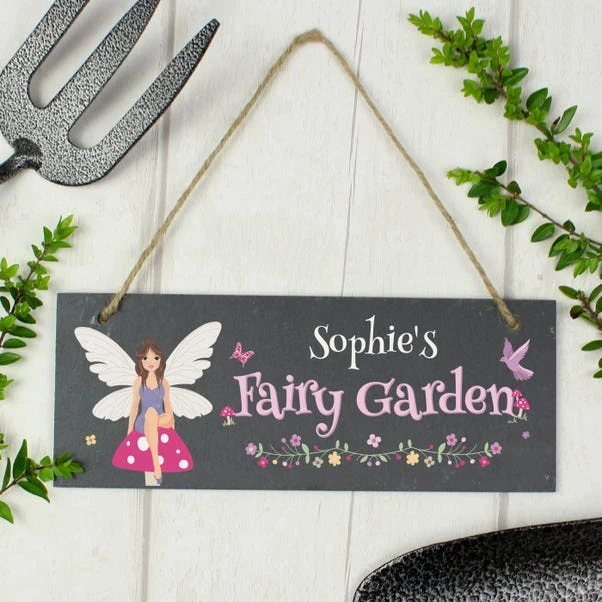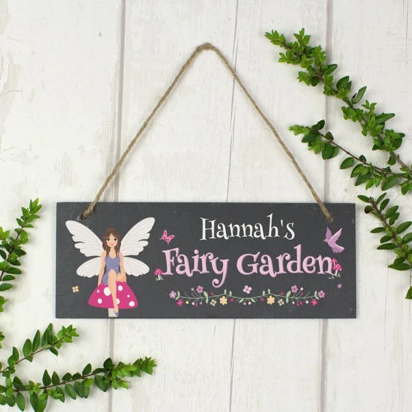 Make a little one’s birthday extra special with the Personalised Fairy Garden Hanging Slate Plaque, a perfect gift for a magical celebration. Its rustic, enchanting design adds a touch of whimsy to any space.