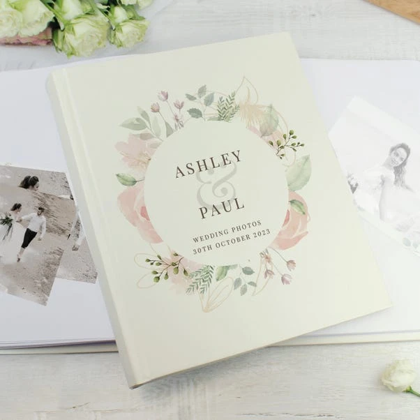 Safeguard your precious memories in this elegant floral personalised wedding album. With room for up to 4 lines of text, it’s a sophisticated way to commemorate your special day, boasting approximately 30 tissue interleaf pages.