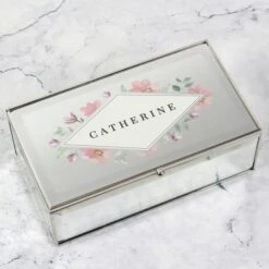 Personalised Floral Watercolour Mirrored Jewellery Box: Store your treasures in style with this personalised mirrored jewellery box. Featuring a floral design and customisable text, it’s a beautiful gift for any occasion.