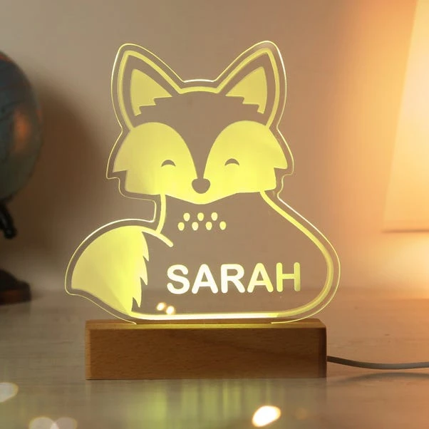 This fox night light is the perfect addition to any little ones room and is perfect as a night light. Comprising of a sturdy base with a LED light which you can personalise with a name of your choice. To change the colour of the LED light, simply use the control pad to pick a colour of your choice. These can be set to change constantly if all the colours are your favourite, or you can pick one specific colour! Personalise with a name of up to 12 characters long!