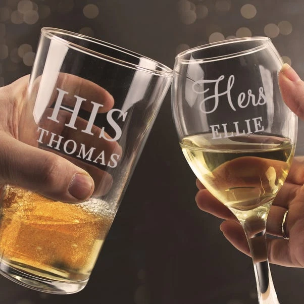 - Personalise this pint glass with a name up to 12 characters, you can also personalise the wine glass with up to 12 characters.