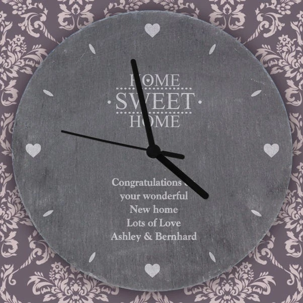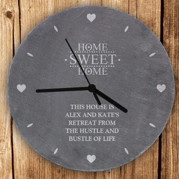 The Personalised Home Sweet Home Slate Clock is a rustic beauty, making it an ideal gift for those starting a new life journey. Personalise it with heartfelt messages to create a warm and welcoming home.