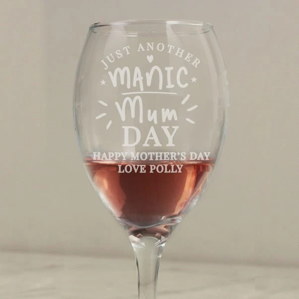 The Personalised Manic Mum Day Wine Glass is a must-have for wine-loving mums. Personalise it with two lines of text to make this glass a thoughtful gift for Christmas or Mother’s Day.