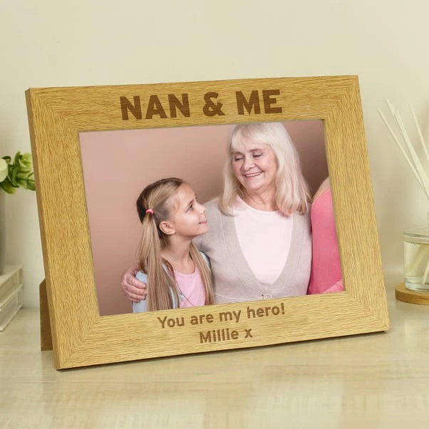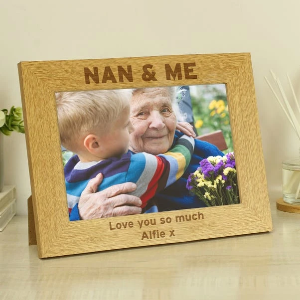 Celebrate the special bond between a grandchild and their nan with The Personalised Nan and Me Wooden Landscape Photo Frame. Personalise it with your message to create a touching gift perfect for birthdays, Christmas, and Mother’s Day.
