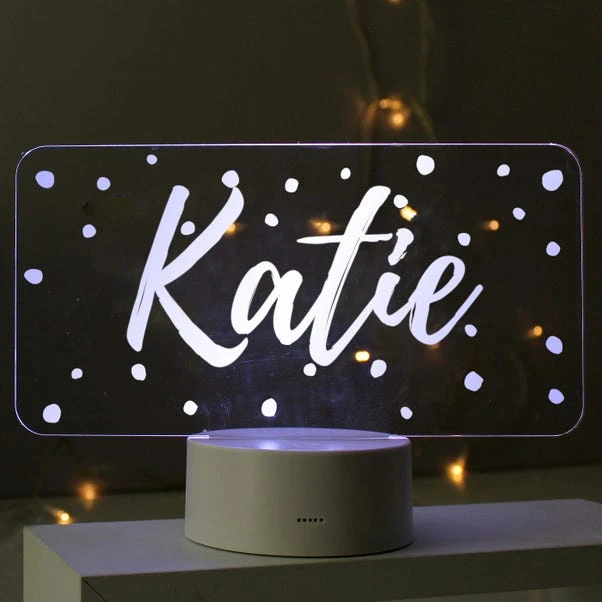 This personalised lamp is a great gift for a friend or family, comprising of a sturdy base with a LED light which you can personalise with a name of your choice with a trendy polka dot design. To change the colour of the LED light, simply touch the base to pick a colour of your choice. These can be set to change constantly if all the colours are your favourite, or you can pick one specific colour! Personalise with a name of up to 12 characters long!