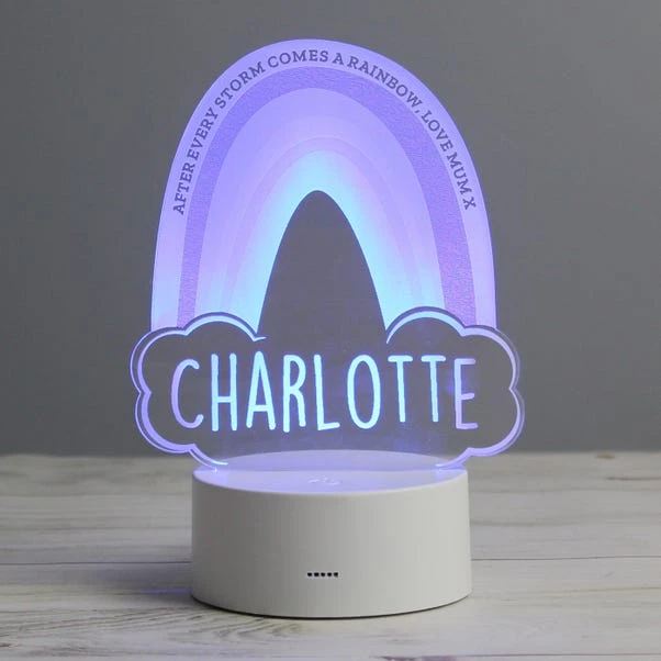 - You can personalise this LED light with any name up to 12 characters long and a message of up to 50 characters long which will appear in fixed uppercase on the rainbow