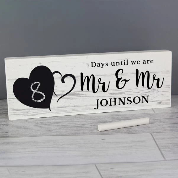 Personalised Rustic Chalk Countdown Wooden Block Sign: Make the countdown to the big day extra special with this rustic wooden block sign. Personalised with your message, it’s a fun way to build anticipation for the wedding day.