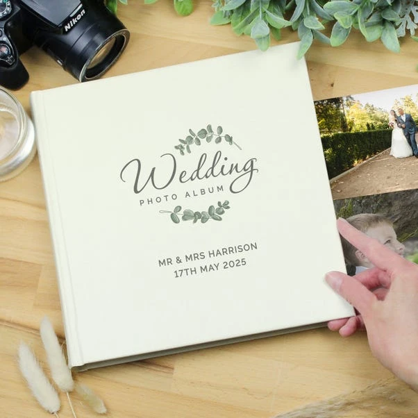 Cherish the memories of your special day with this personalised wedding photo album. Customise it with your names or a special message, featuring 30 sleeved pages to hold up to 120 6×4 photos.