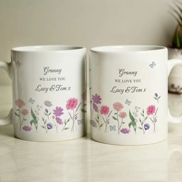 Brighten up your mornings with our charming Personalised Wild Flowers Mug. Perfect for nature lovers and tea or coffee enthusiasts, this beautifully crafted ceramic mug features a delicate, wildflower design that captures the essence of a blooming meadow. Personalise this mug with up to 3 lines of 20 characters.